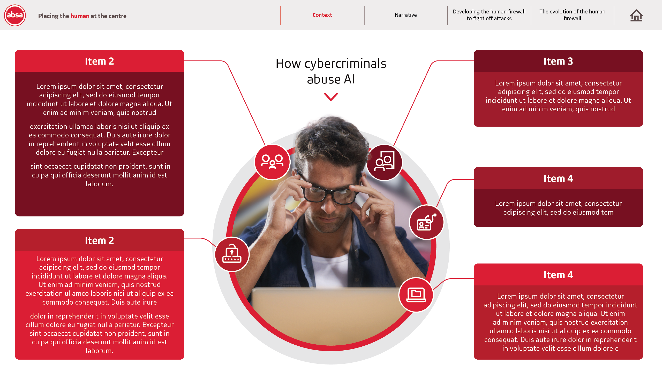 Absa contracted the Performance Agency (TPA) to help staff adopt behaviours to strengthen the company's cybersecurity. During my role as a graphic designer, I was tasked with designing the communication material for the initiative. Absa has established a well-recognised brand and has set strict rules around it.