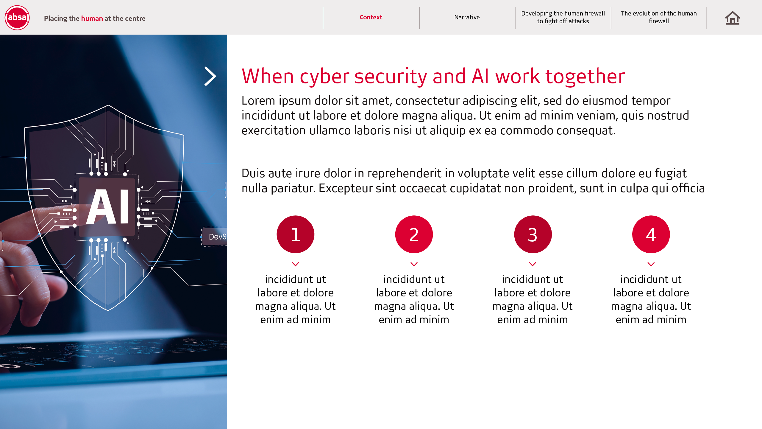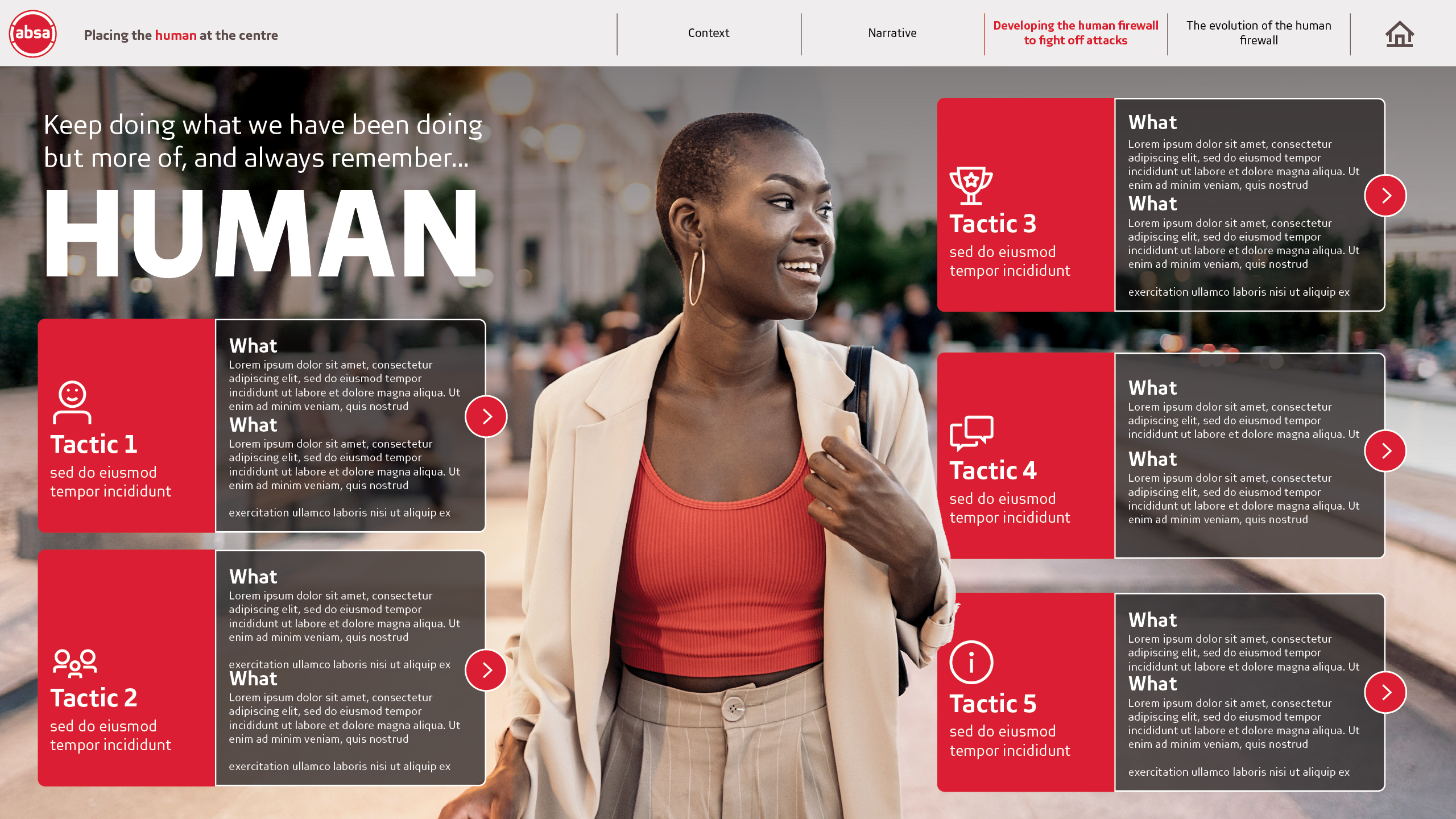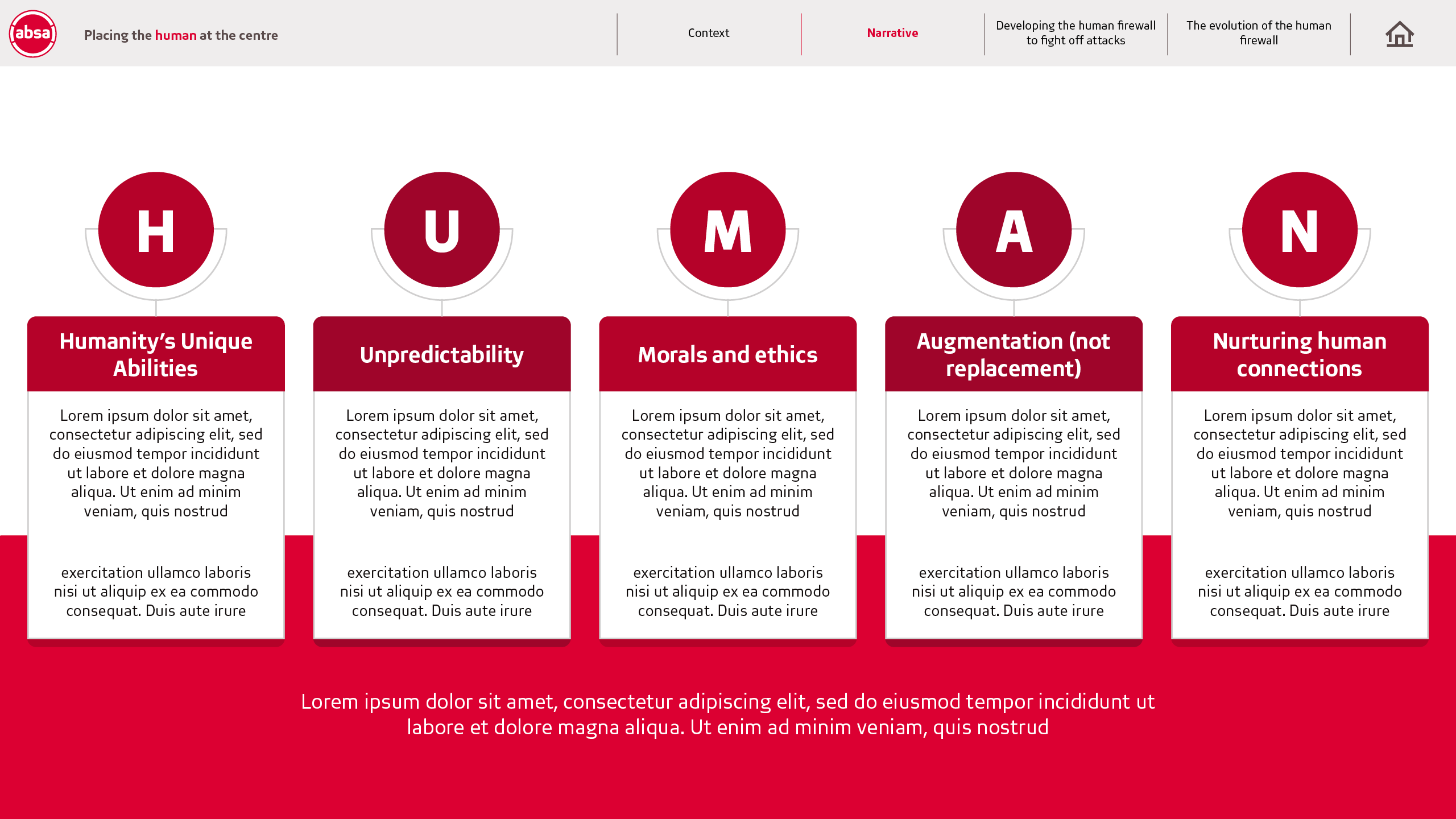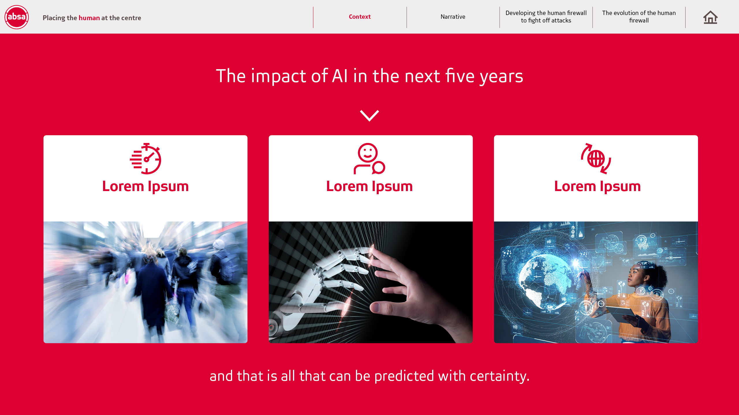 During the design, adhering to Absa's CI guide was a must, but I used it as an enabling constraint to find creative ways to make the content visually appealing and keep the reader engaged.